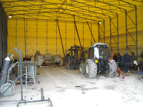 Un altro capannone adibito ad officina meccanica attrezzata per lo smontaggio, la riparazione ed il riassemblaggio, infine un capannone telonato per la rimessa di materiali pronti per la consegna.